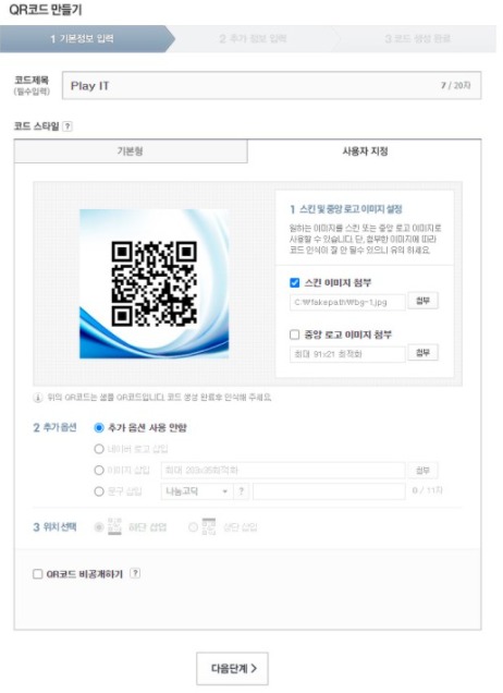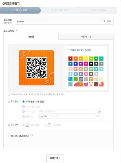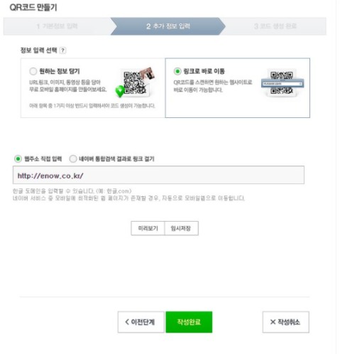 1.포털사이트 검색창에 [네이버 QR코드 만들기]를 검색해 나만의 코드 만들기를 입력하고 사이트로 접속한다.